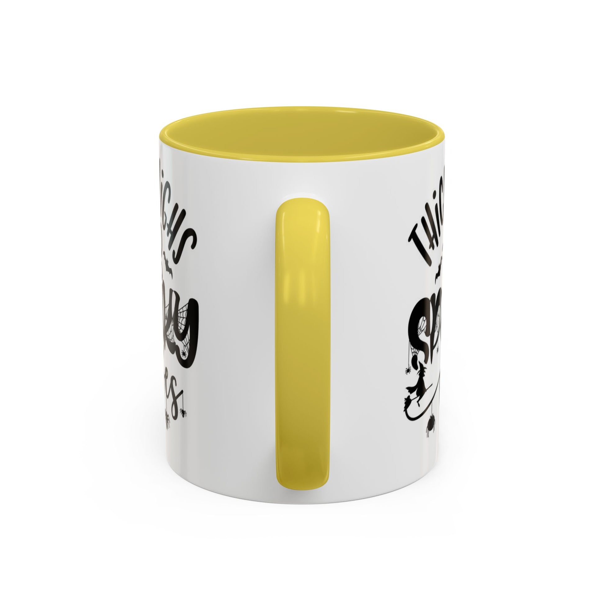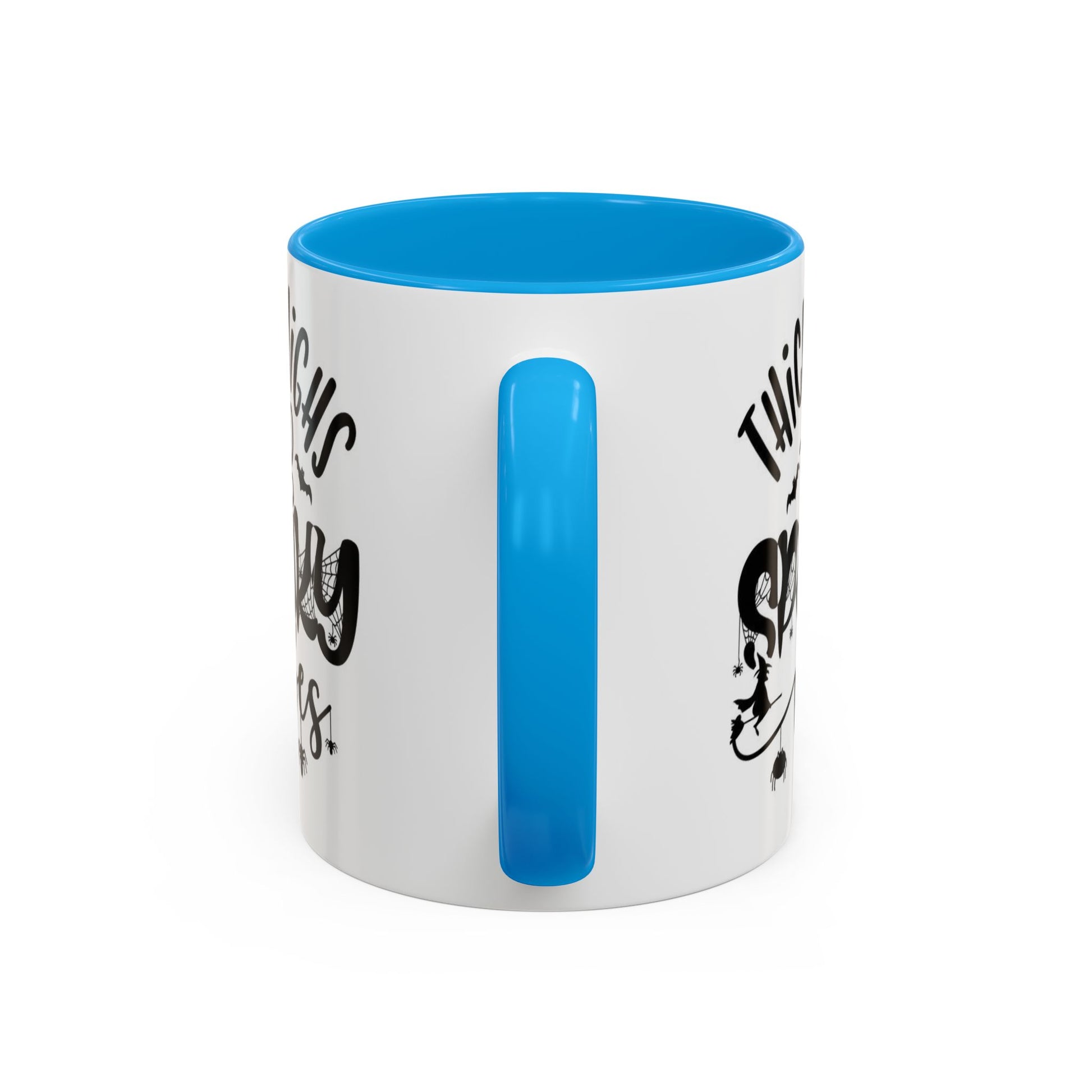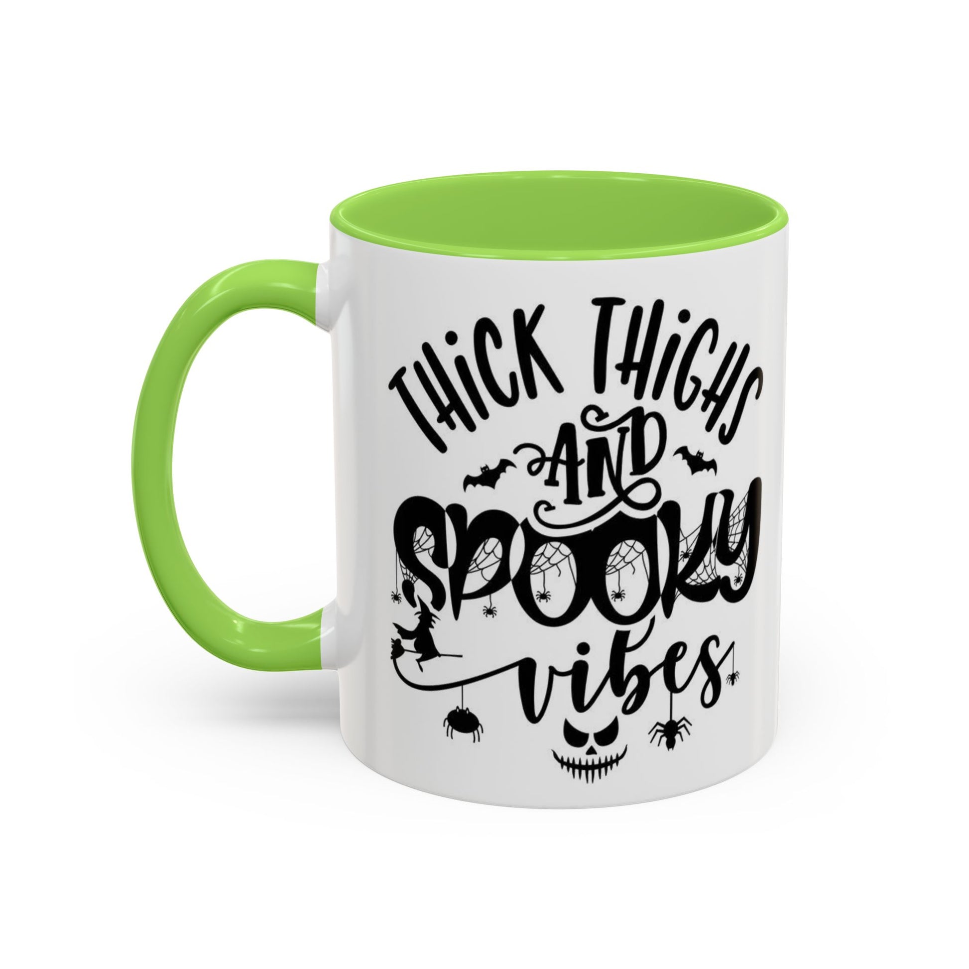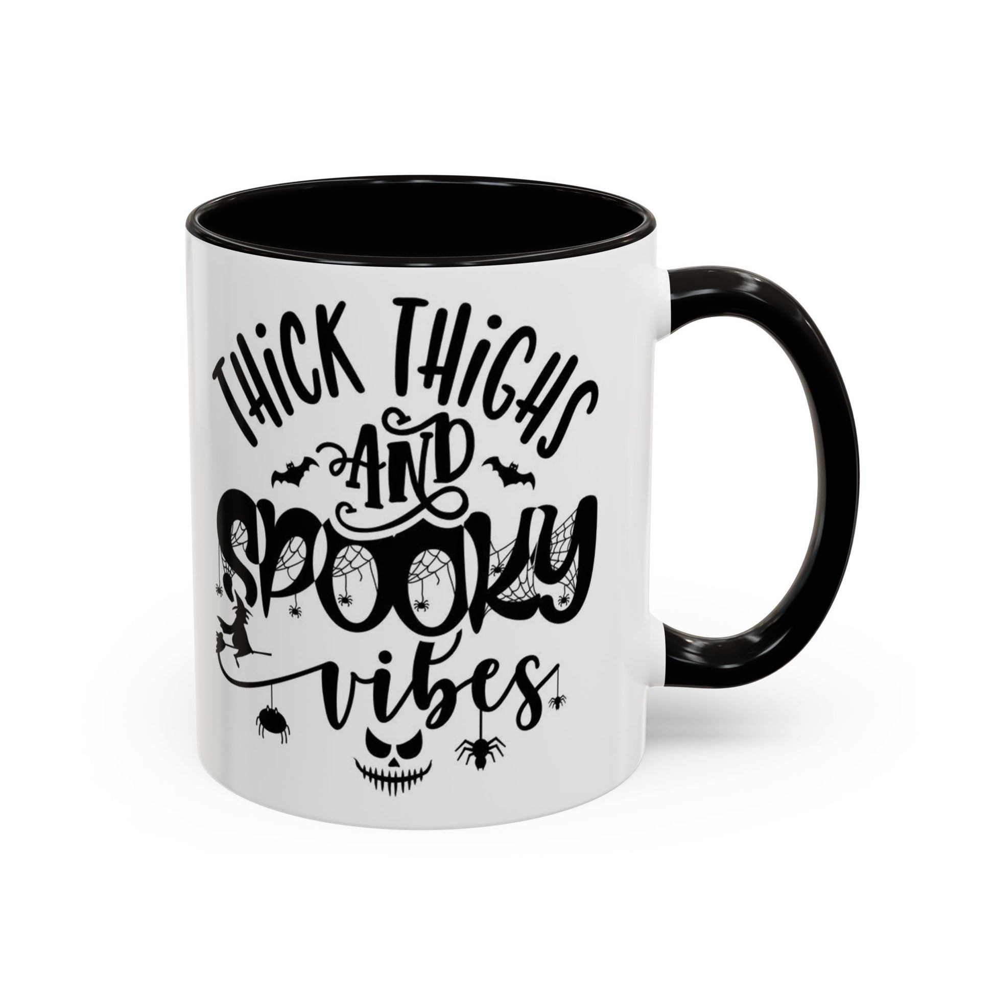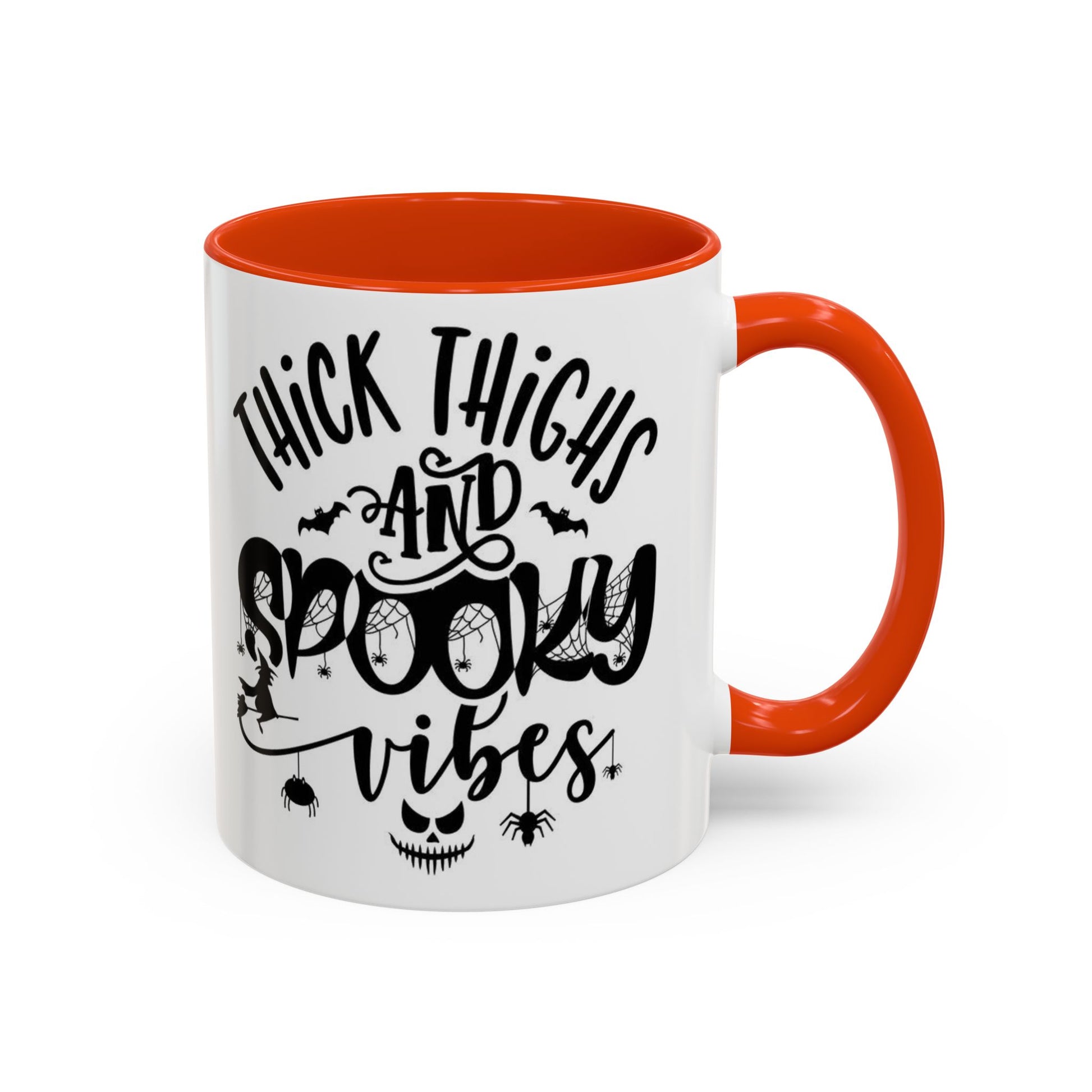 Thick Thighs and Spooky Vibes Color Accent 11 oz Coffee Mug, Halloween Gift Collection